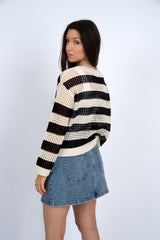 FITTED BLACK AND WHITE STRIPE CARDIGAN