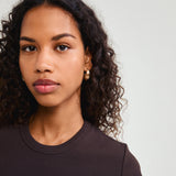 The Asle Gold Earrings blend bold shape with smooth texture for an easy, polished finish. Crafted with a sculpted curve and plated in gold, they offer just the right amount of shine without feeling heavy. The ridged design adds a modern edge that makes them a go-to piece for both casual and dressed-up looks.