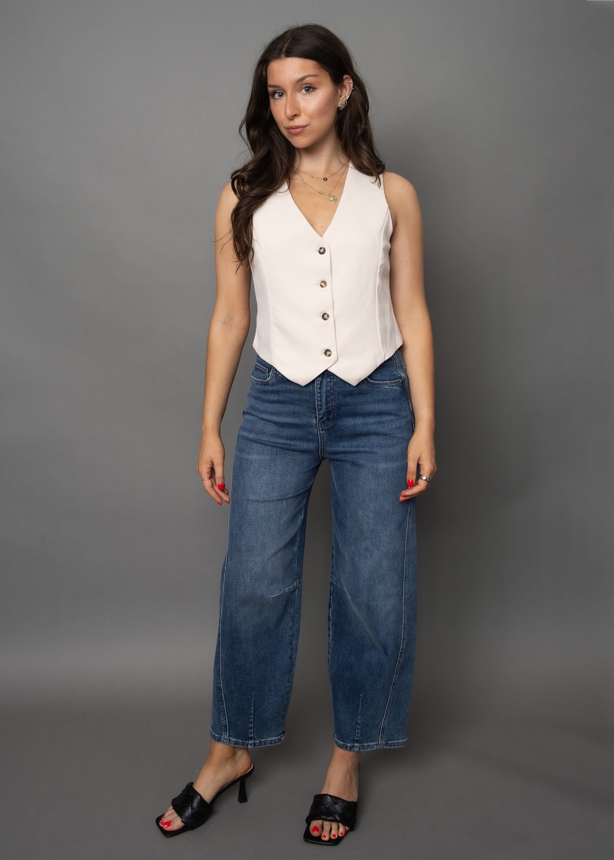 The Silk Back Vest brings a modern twist to a timeless layer. Designed with a tailored front and a smooth silk back, it combines structure with softness for an easy, confident look. The button front detail adds polish while the lightweight feel makes it versatile for dressing up or down. It’s the piece that instantly elevates denim, trousers, or skirts without feeling overdone.
